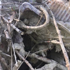 Unser Essplatz am Baumstamm befindet sich neben einem riesigen Haufen Treibholz, faszinierend und irgendwie auch schön.